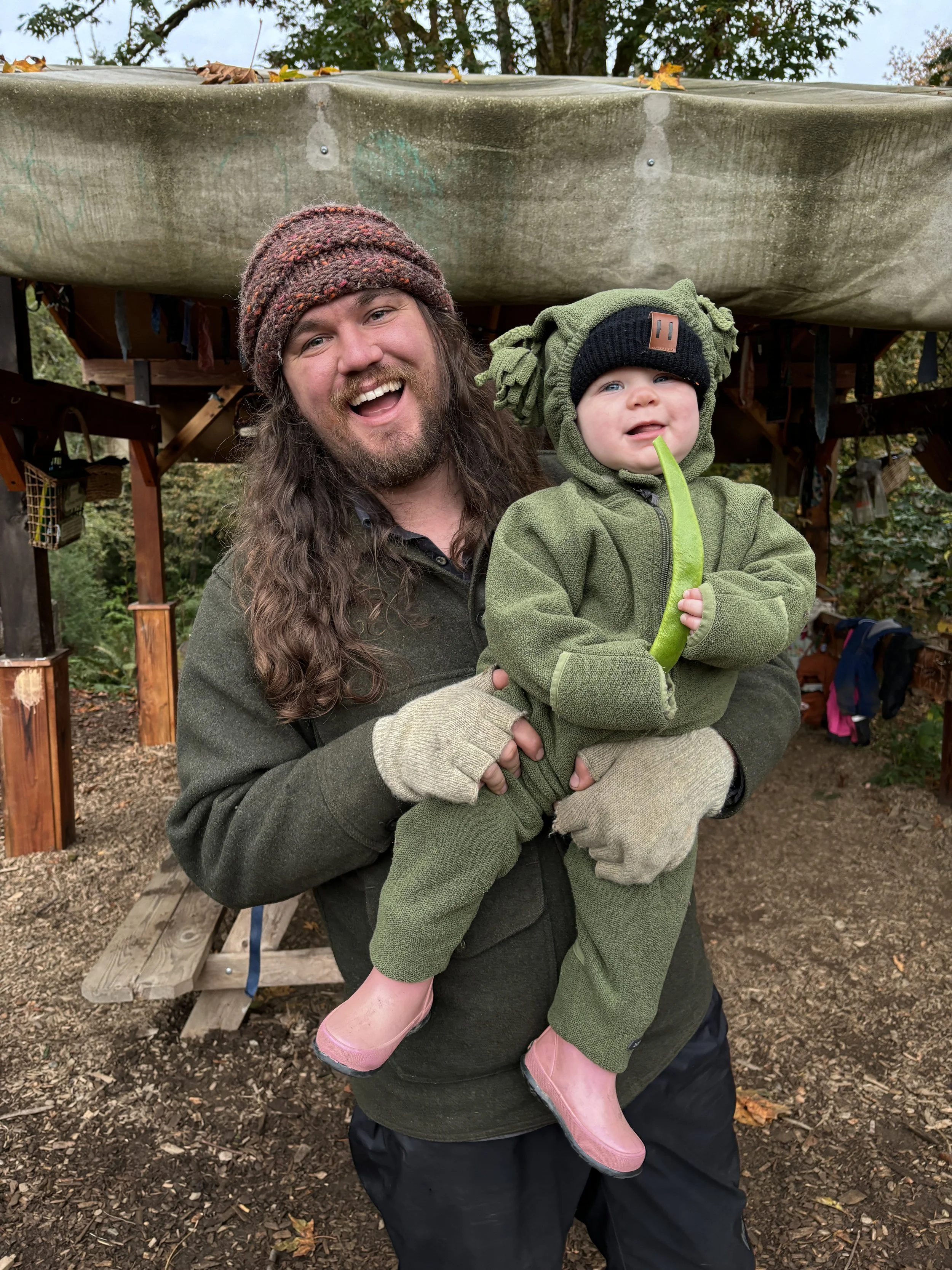 She first fell in love with nature in the warmer waters and soft sandy lowlands of South Carolina and was delighted to find her drawings of oceanside forests come true when she moved to the PNW several years ago and began to know our Doug Fir, Madrona and Red Cedar rainforests. She pursued interests in farming, fiber arts and herbalism while falling in love with preschoolers and teaching methods founded in respect and child-led inquiry based curriculum. She also found great teaching inspiration from the Cedarsong Way as well as the 8 Shields model of nature connection. She is inspired by the deep presence and immersive attention that children and adults find in nature together. She appreciates the compassion, empowerment and inclusiveness that she has witnessed in children playing in community with nature. She is excited for all the play, laughter, stories and love we will share as we deepen our sense of belonging together.